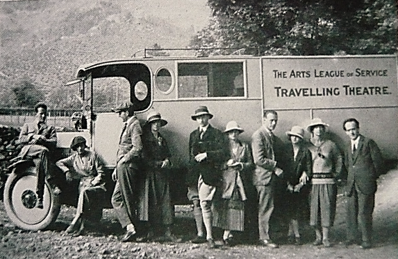 The onset of WW1 saw the demise of most travelling theatres. However, there was a revival of this form of entertainment in the inter war years under the auspices of ‘The Arts League of Service’ in existence from 1919 to 1937. This organisation aimed to bring the arts to the masses through lectures on art, literature, dance, music and crafts, an exhibition space in London and a theatrical touring company that staged repertory shows. Their touring vehicle from 1922, above, had room for actors, costumes and some props and they performed in a range of buildings. For example, they appeared in a church hall at Swinton and school assembly halls at Barnsley and Castleford, some proceeds going to charitable causes.